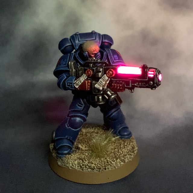 Almost two years after finishing my first Crimson Fists Hellblaster, I’ve finally returned to add another member to this unit. I did start assembly work on this model quite a while ago, but rage-quit after accidentally breaking the last two pink 1.8mm LEDs that I had in stock!My plasma incinerator is like the sun I never had.