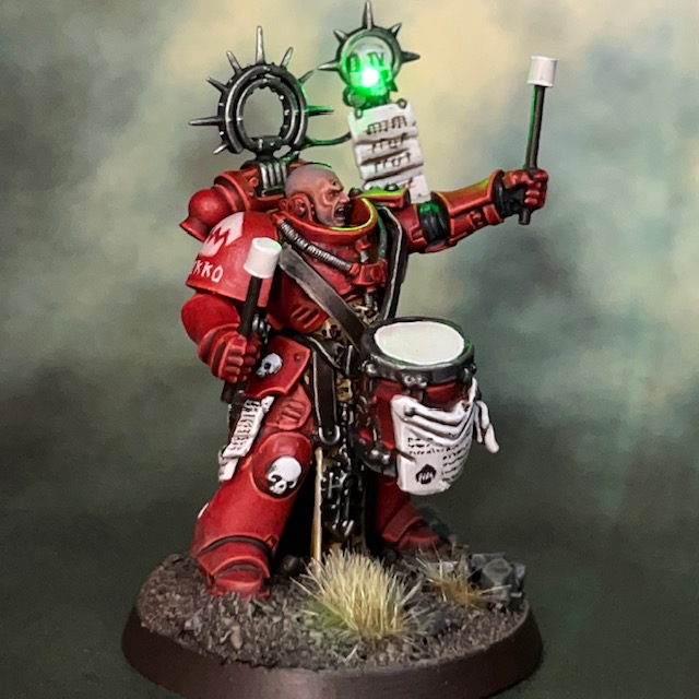 Drum Major Nikko is the next officer to join my Flesh Eaters ‘Armies on Parade 2022’ project. He will count as a Primaris Lieutenant on the table top, with the inspirational beat of his drums representing the ‘Tactical Precision’ aura.