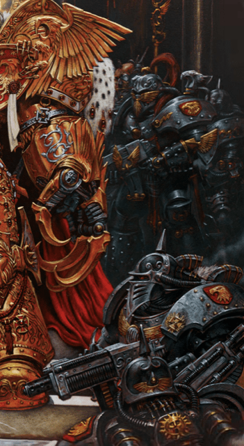 I’ve always been a fan of dark armoured Custodes, like the ones seen in the corner of the iconic image below. I love the way it makes them look secretive and sinister. In my mind they aren’t straight-up “good guys”. Their function is to ensure the safety of the Emperor, and any other considerations are secondary. In a similar vein, I’ve enjoyed the lore of the Shadowkeepers Shield Host since I first read about it when the Adeptus Custodes received their own codex a few years ago. The idea of these grim wardens patrolling the dark and forgotten cells deep below the Emperor’s Palace is extremely evocative. So when the time came to revisit the Custodes, the Shadowkeepers were a natural choice for the colour scheme.