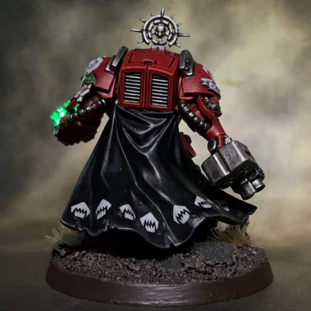 I did consider giving Captain Caedes grey or white hair, but settled for brown because I wanted to give him a more youthful appearance to feed into the “young hothead” narrative – he has sworn to defeat a Primarch in personal combat after all! “Young” is a comparative term for a Space Marine Captain though, he’s still over 100 years old!