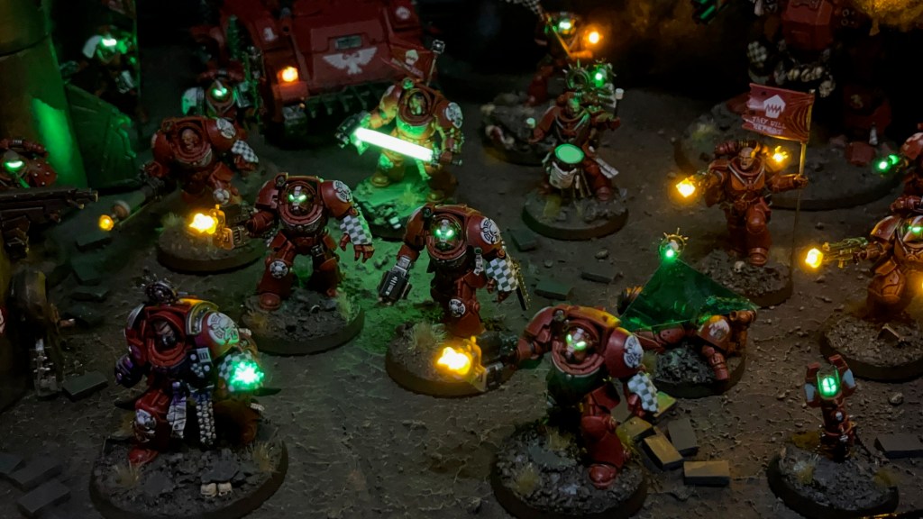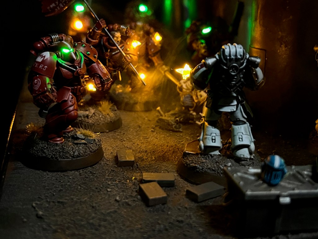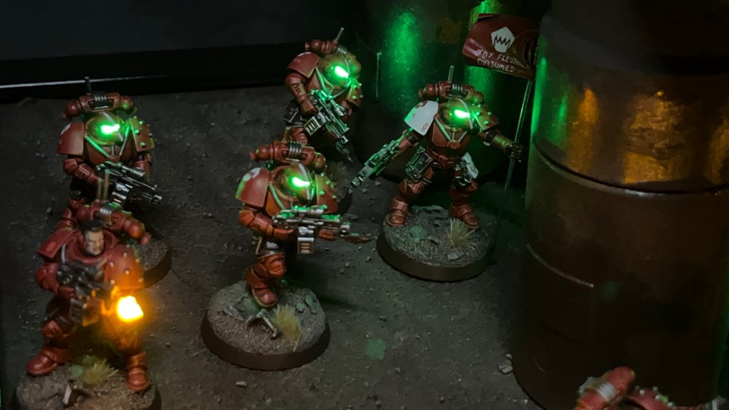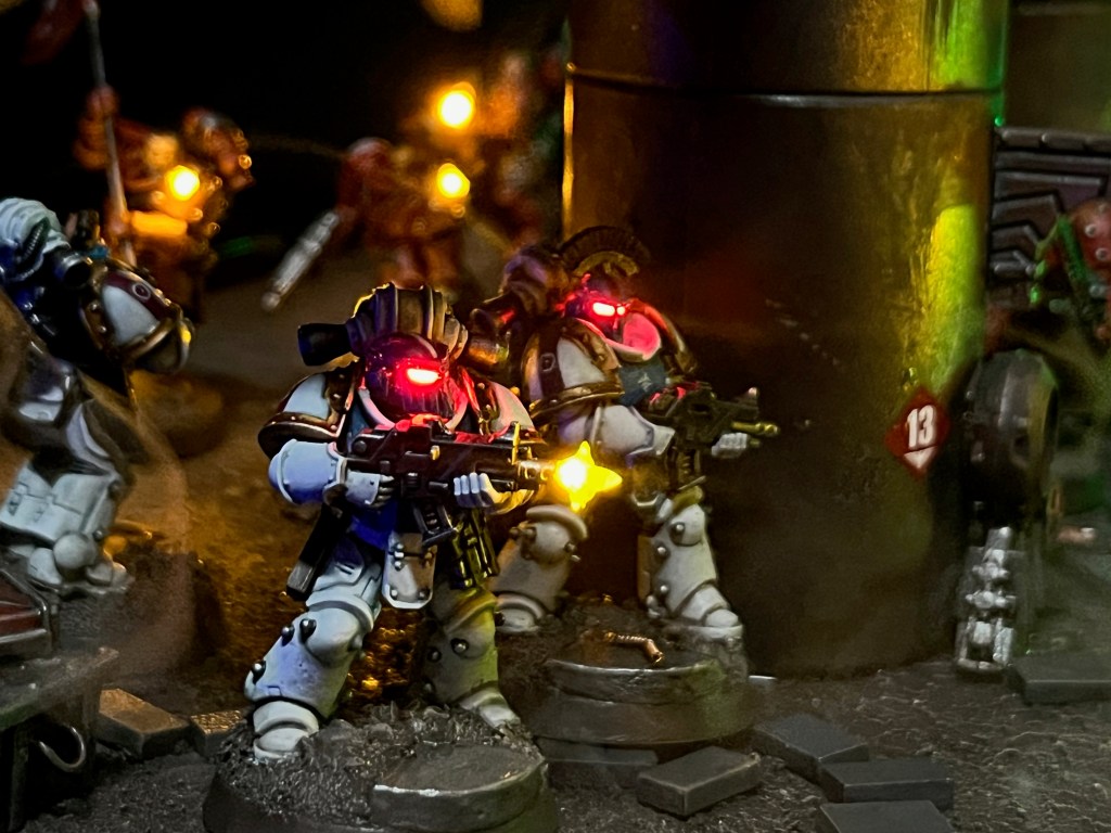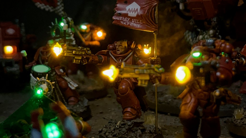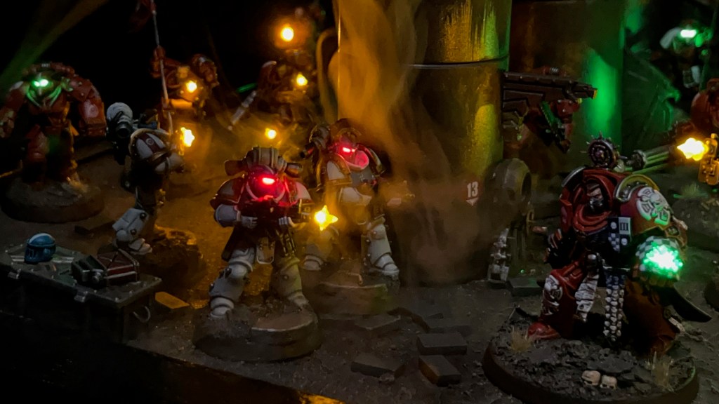 The Silver Stars space marines from my Armies on Parade 2023 board returned to the fray this year. As the Flesh Eaters include so many LED muzzle flares and bullet impacts, I always think it’s important for them to have an antagonist on their display boards to help give some context to the effects.