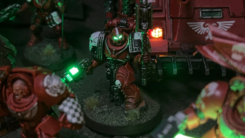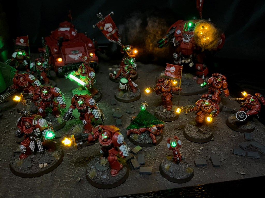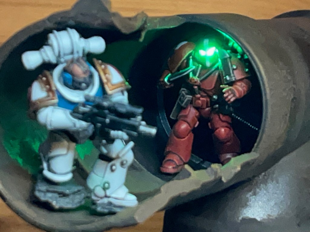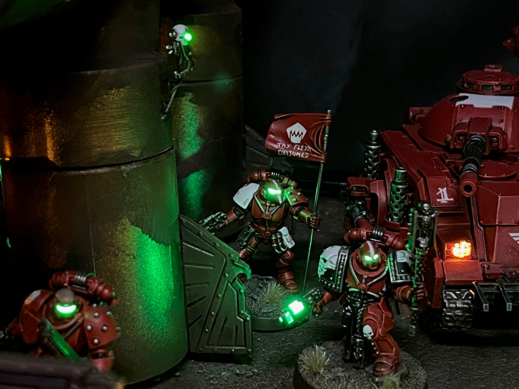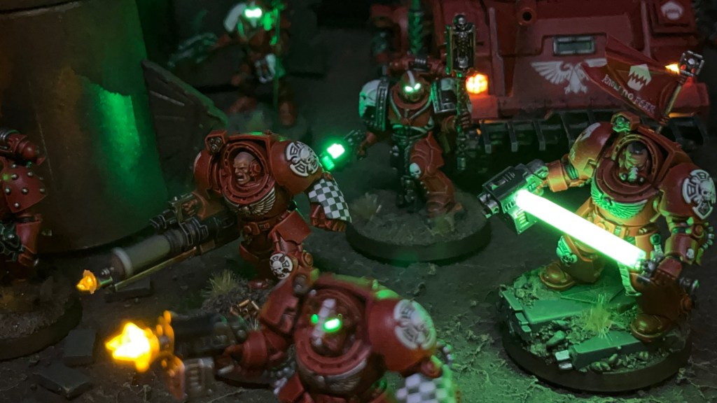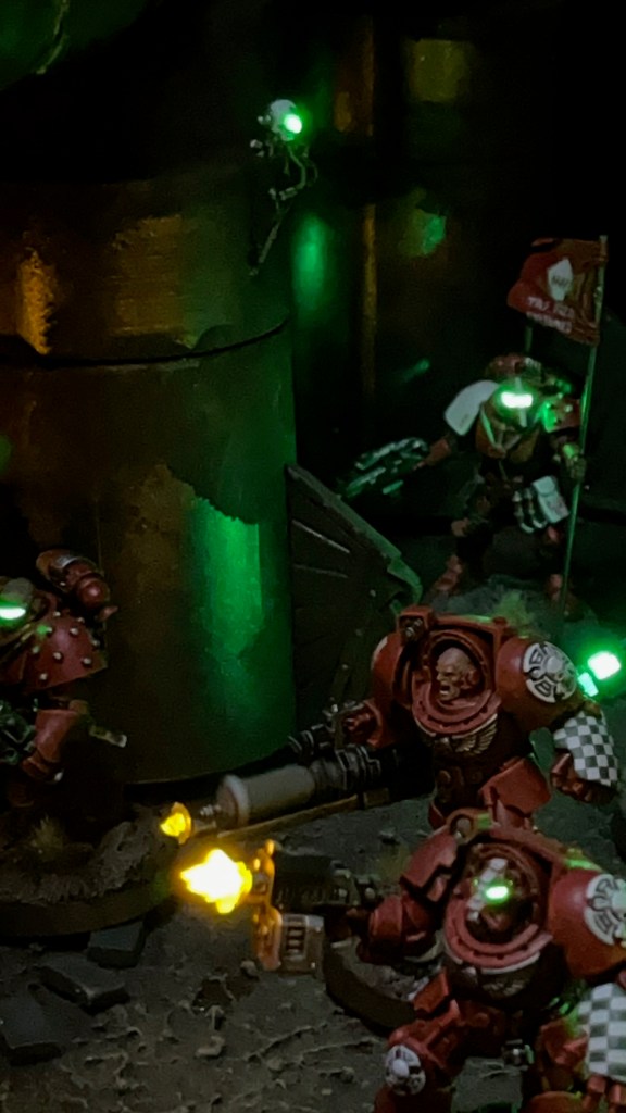 The Silver Stars space marines from my Armies on Parade 2023 board returned to the fray this year. As the Flesh Eaters include so many LED muzzle flares and bullet impacts, I always think it’s important for them to have an antagonist on their display boards to help give some context to the effects.