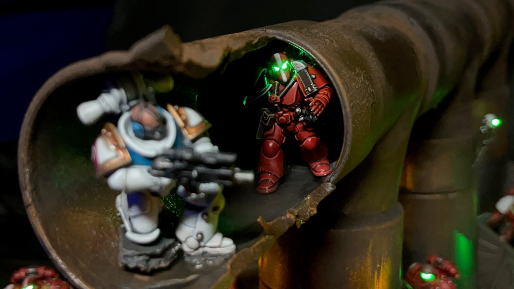 Given more time, would I have done anything differently? Not significantly. I would have mounted the second servo skull lower on the pipeline, as mentioned above, and probably would have included a few smaller extra pieces of small scatter terrain. There was also an additional Silver Star that I didn’t quite finish in time (I’m sure we’ll see him soon) and of course the large Flesh Eaters tank that I’ve been working on for a long time and still haven’t finished…
