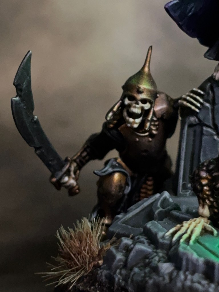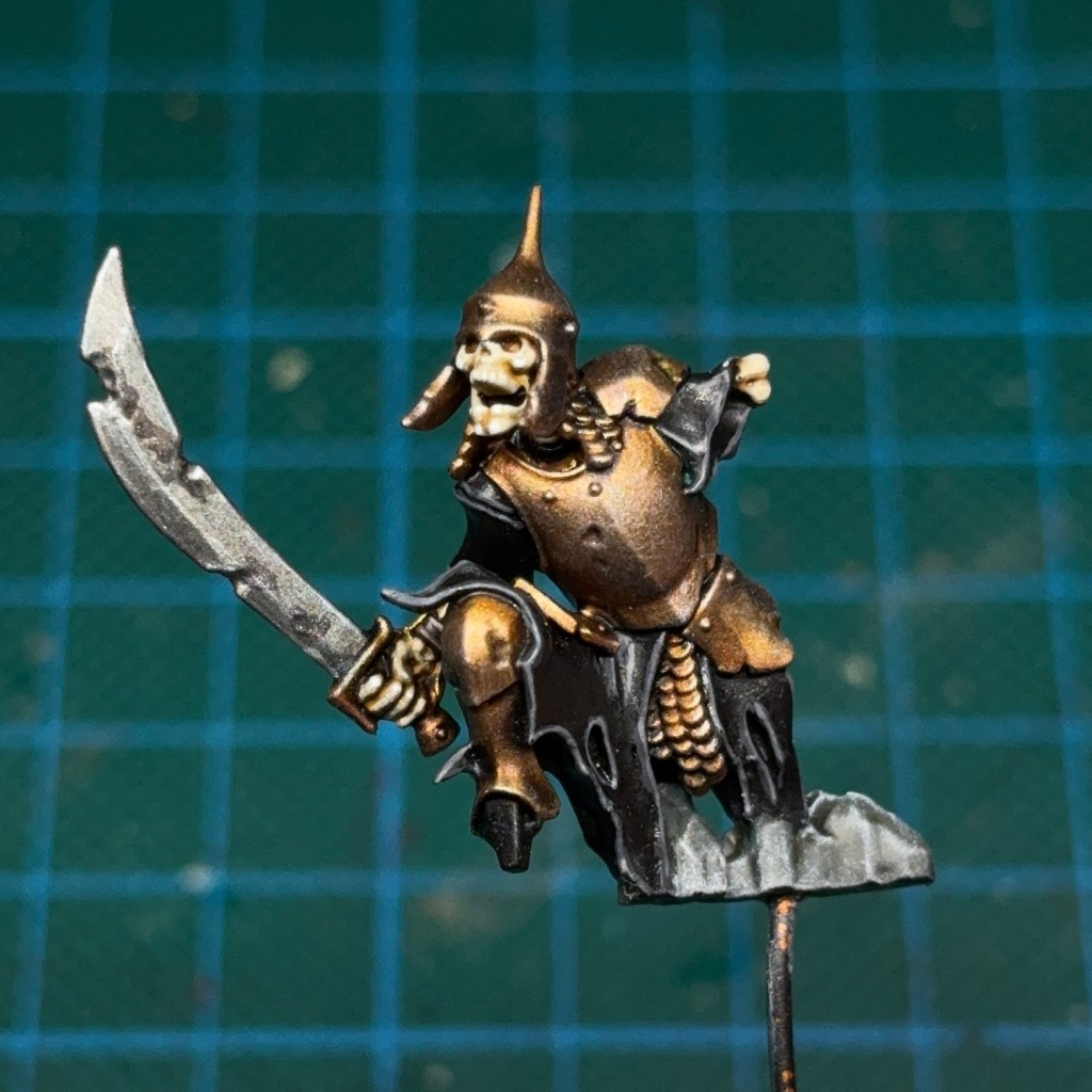The miniature was undercoated with Citadel ‘Chaos Black’ spray. All other paints are Citadel unless specified otherwise. It’s worth noting that for ease of access to details I painted the skeletons as separate sub-assemblies.