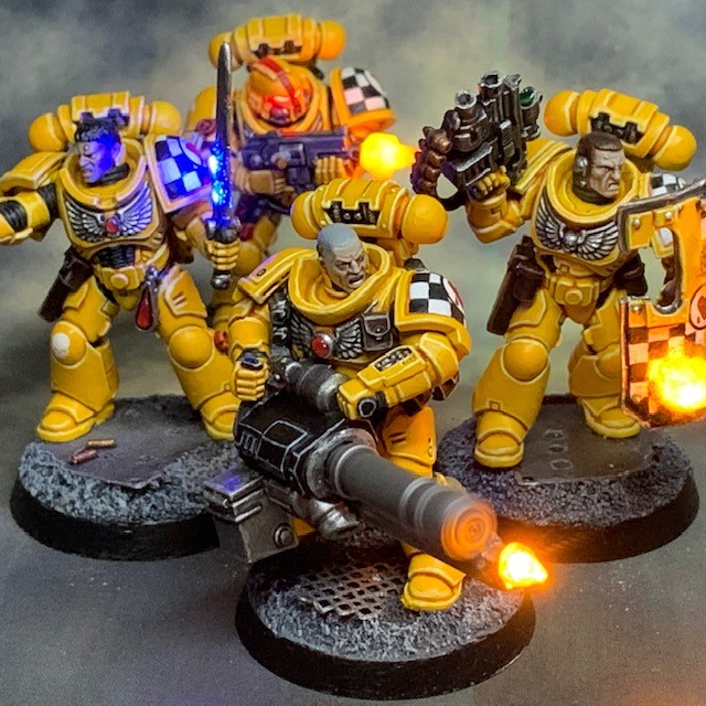That’s it for this week. I’ll end with a group shot of the kill team so far (minus the Mk VI, who has returned to the chapter forge for modifications). That’s four down, three to go! My aim is to have the team finished by the time face-to-face gaming is allowed again in the UK, so please visit again soon to see how I’m getting on with that!