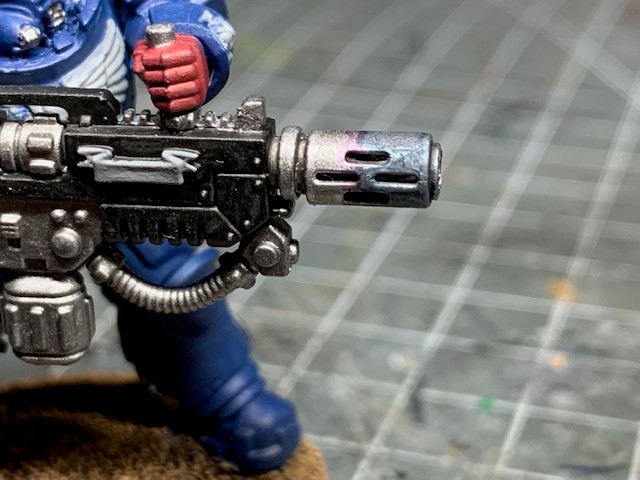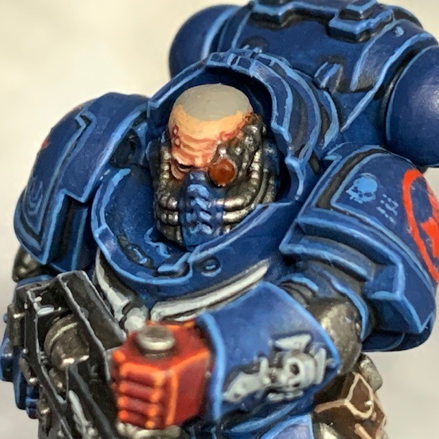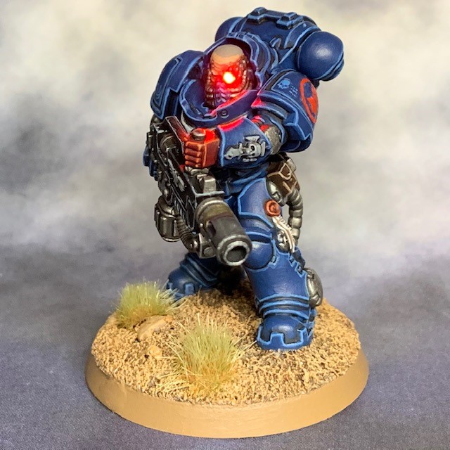 I had built a similar effect before with my Crimson Fists Captain, although in that case he couldn’t wear the helmet ‘mag locked’ to his belt. It’s a technique I’ve been meaning to revisit for a while and refine into a short-form tutorial. The base miniature is an Assault Intercessor from the Indomitus box – yes, I’m still working my way through that!