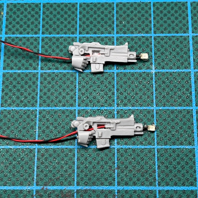 You may also want to add additional LED effects, for example LED Muzzle Flares or LED Plasma Weapons. If you do, this is the point at which to do it. Additional LEDs can be connected in parallel with the connections to the IC socket on the base (above right).