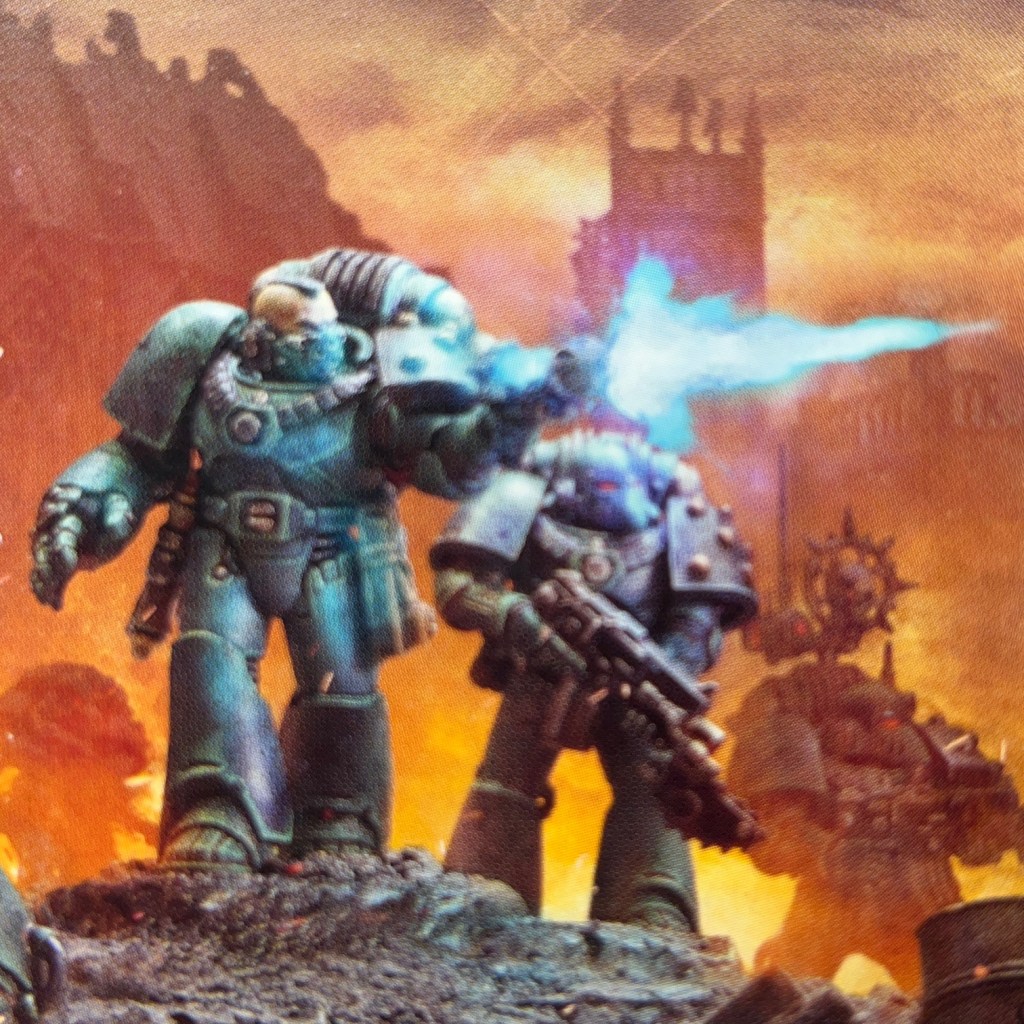 As a big fan of Imperial Fists and their successors, I knew from the start that the Marine wielding the volkite would be from the VII Legion. As to who they would be shooting, I considered Iron Warriors and Night Lords, both iconic enemies of the Imperial Fists. But in the end, I settled on the Sons of Horus since they are essentially the main antagonists of the Heresy setting. It also helps to make the duel a microcosm of the Horus Heresy as a whole.