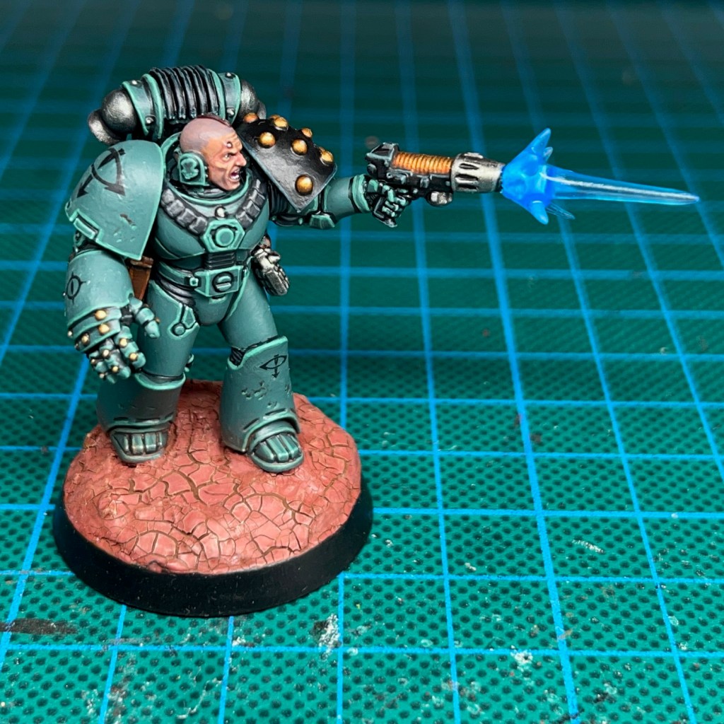 In a surprise to absolutely no one, I’m back again this week with another MKVI Space Marine. What is surprising is that it’s not a loyalist painted in a primary colour – red, blue or yellow – but in a lovely sea green traitor! Brother Amset of the Sons of Horus is a test model for an upcoming project, just like my Custodian and Imperial Fist from recent weeks. It’s been many years since I’ve painted a Marine who has spat on his oaths to the Emperor, and it felt a bit strange!
