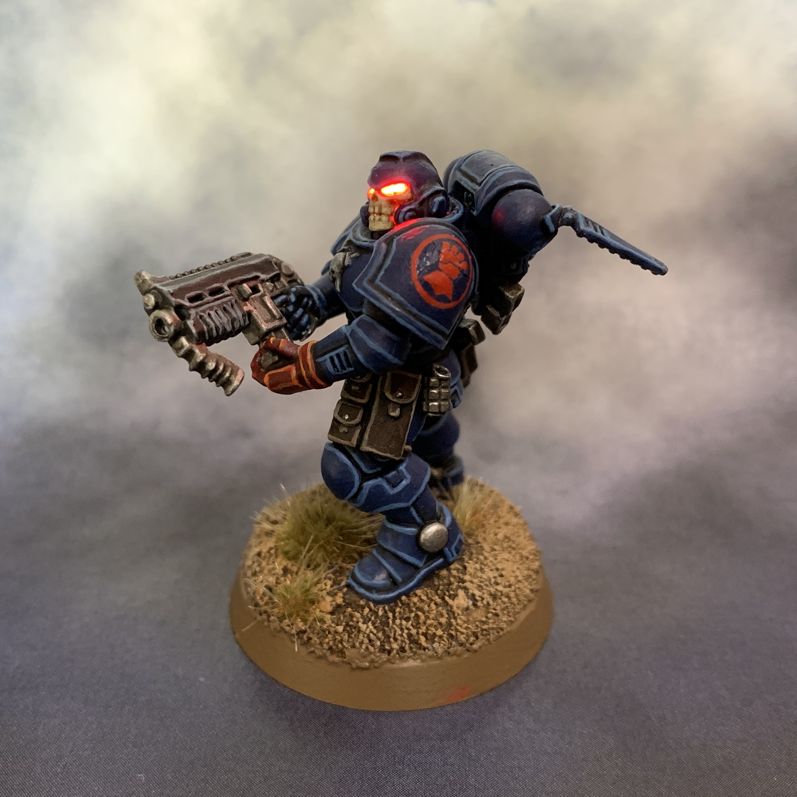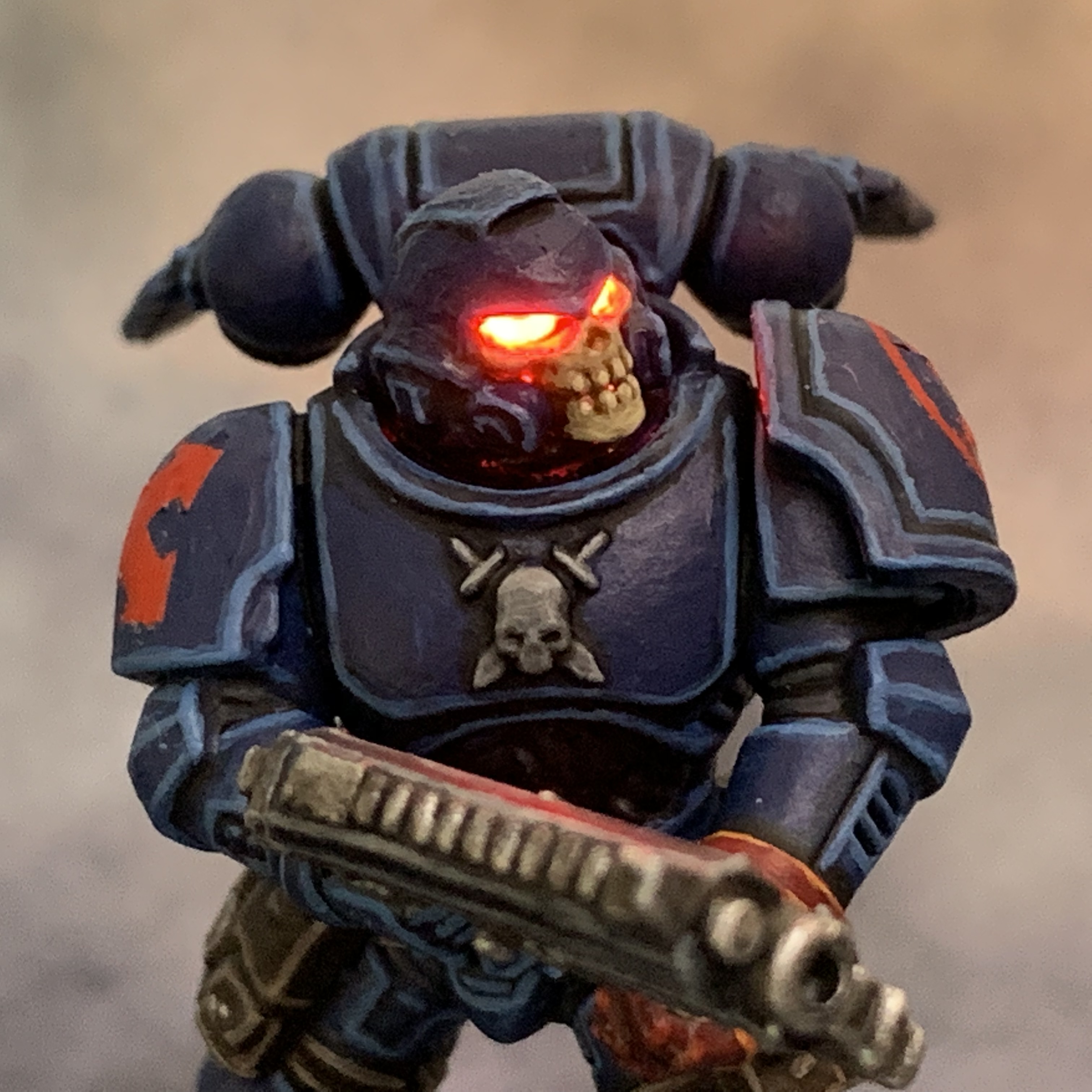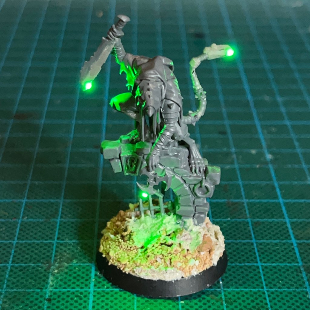 I don’t have anything particularly groundbreaking to say about the painting. I knew the LEDs were going to be doing the heavy lifting for the visual on this miniature, particularly with large areas of featureless black cloth, so I stuck close to the box art scheme.