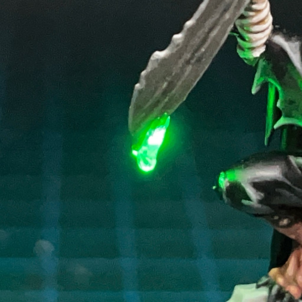 - Lastly, I cut the tail into sections and drilled through the middle of each of them to allow the wire to pass inside. The blade on the tip of the Deathmaster’s tail is sculpted from scratch using modelling putty to conceal the LED while trying to appear as close to the original tail blade as possible.